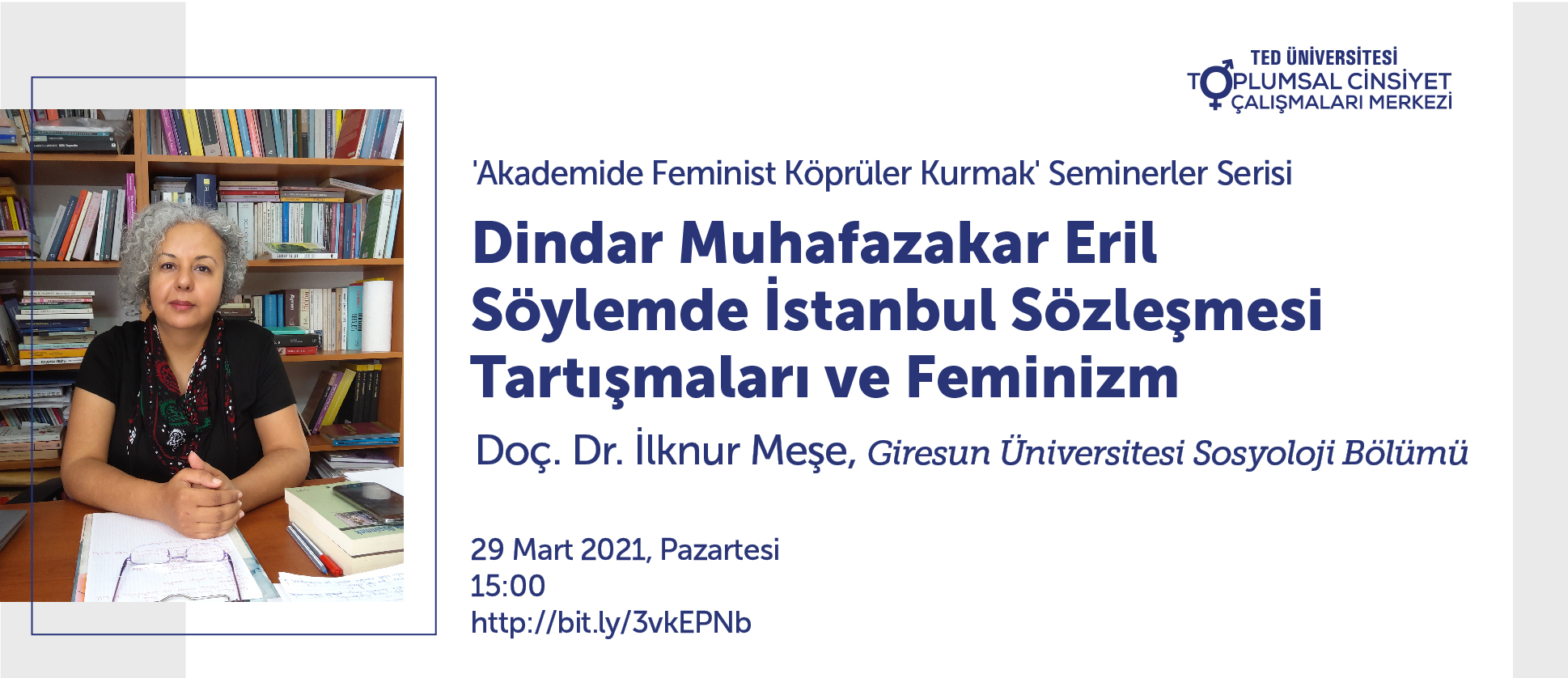 Doç. Dr. Zehra Yılmaz ile "'Taşra'da Uluslararası İlişkiler Bölümünde Feminist Hoca Olmak" Doç. Dr. İlknur Meşe ile "Dindar Muhafazakar Eril Söylemde İstanbul Sözleşmesi Tartışmaları ve Feminizm" Dr. Öğr. Üyesi Selda Tuncer ile "Türkiye'nin Yeni Cinsiyet Rejiminde Dönüşen Kamusal Alan ve Şiddetin Değişen Mekansal Örüntüleri" Dr. Öğr. Üyesi Feyda Sayan Cengiz ile "Fıtratı Aramak: Türkiye'de İslami Kişisel Gelişim Kültürü ve Toplumsal Cinsiyet" Dr. Öğr. Üyesi Dilek Keleş ile "Sendika-Kadın İlişkisi ve Toplumsal Cinsiyet Eşit(siz)liği" Dr. Öğr. Üyesi Seda Coşar Çelik ile "Kanon Dışında Kalanlar" Öğr. Gör. Dr. Merve Aydoğdu Çelik ile "Tanzimat'tan Bir Kadın Profili: Osmanlı Kadın Hareketi Çerçevesinde Fatma Aliye Hanım" Doç. Dr. Hatice Çoban Keneş ile "Cinsiyetçiliğe Yeni Irkçılık İçinden Bakmak: Irkçılığın Cinsiyetçilikle Eklemlenmesi"
